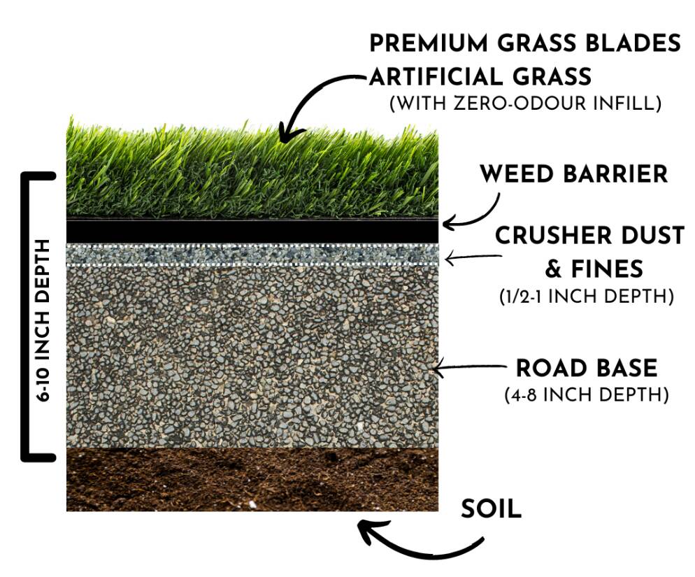For pet areas, use infill materials like Zeo-Odour Zeolite with no weed barrier, combined with dual or triple-layer systems for optimal odour control and drainage performance.