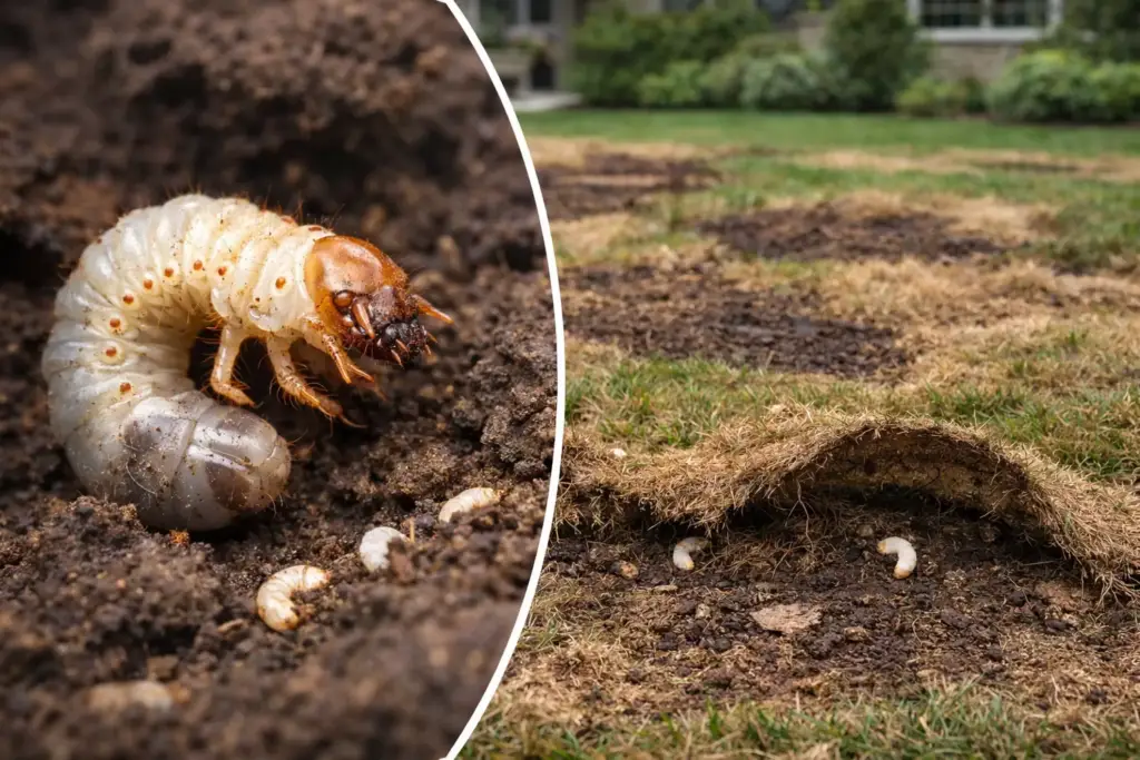 European chafer beetle infestations represent a root-level turfgrass problem capable of causing widespread lawn failure. By destroying the underground root structure, white grub feeding weakens soil stability, increases water requirements, and often leads to repeated lawn renovation.